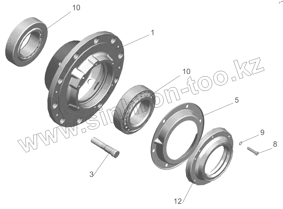 Каталог запасных частей к технике: МАЗ-643018. Ступица с крышкой 544019-3104006-010