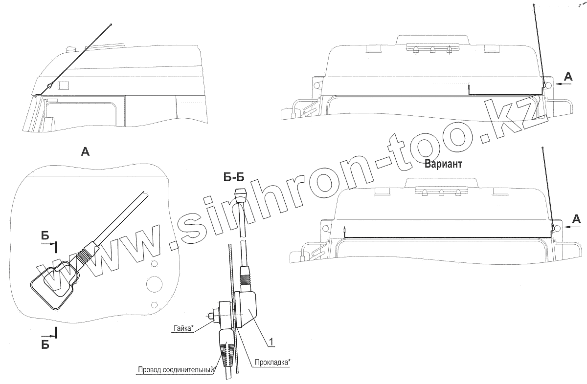 Каталог запасных частей к технике: МАЗ-643018. Установка антенны 6430-7900014