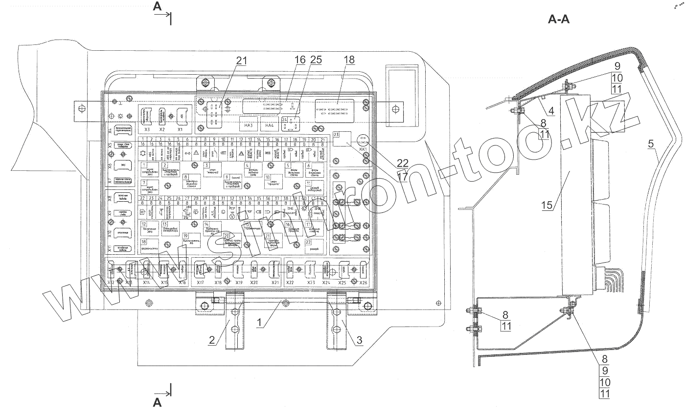 Каталог запасных частей к технике: МАЗ-643018. Установка БКА-N3 544019-3700110