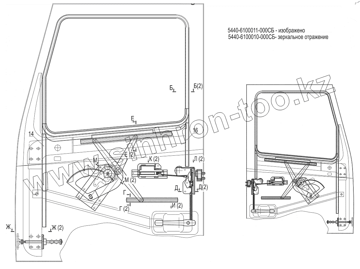 Каталог запасных частей к технике: МАЗ-643018. Установка дверной арматуры