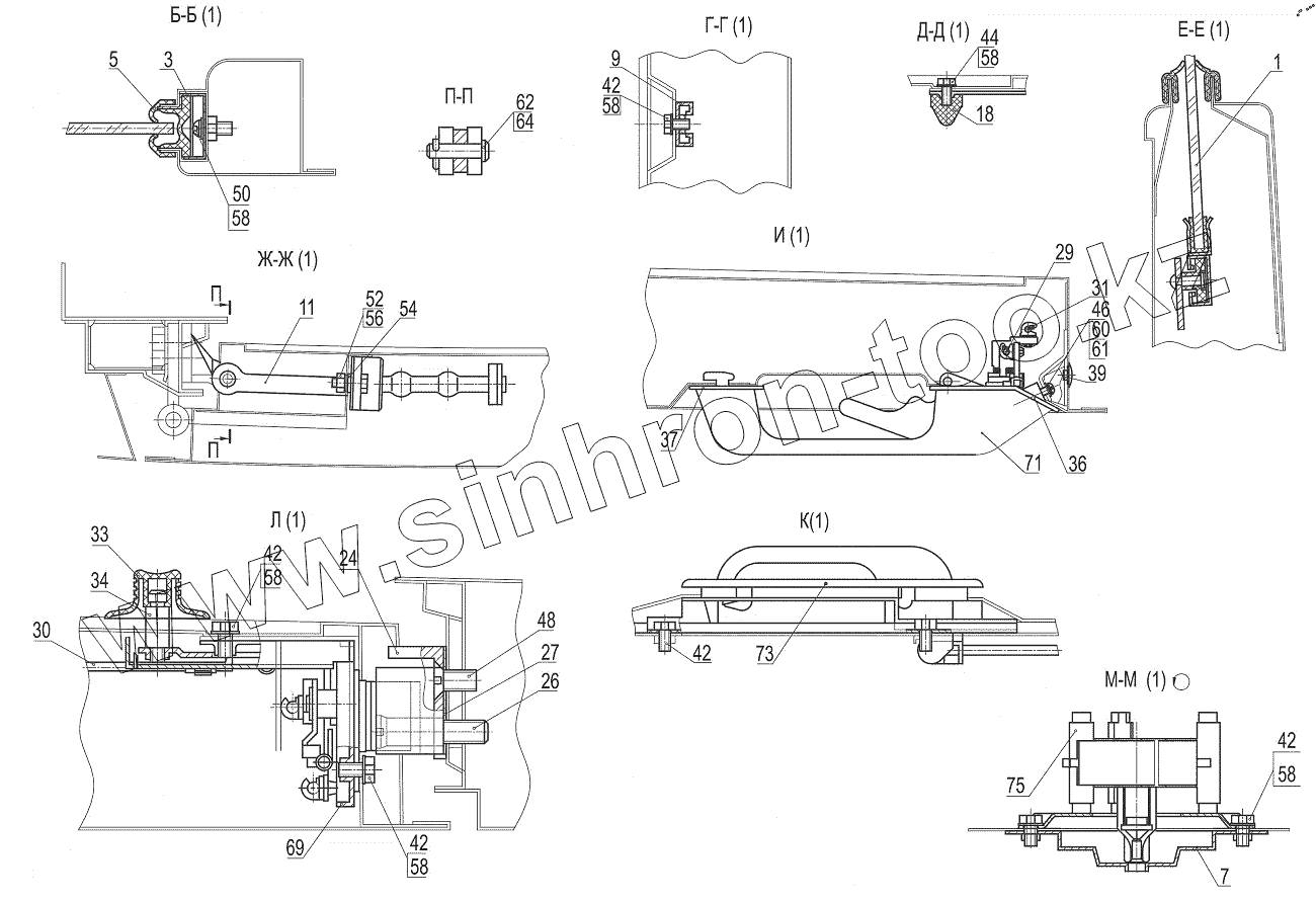 Каталог запасных частей к технике: МАЗ-643018. Установка дверной арматуры