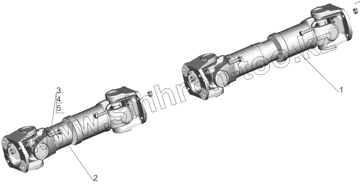 Карданный вал в сборе привода среднего моста с подшипниками импортного пр-ва