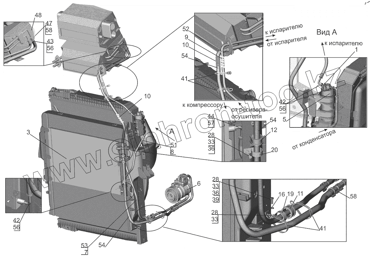 Каталог запасных частей к технике: МАЗ-643018. Установка кондиционера 544019-8100004, (-700)