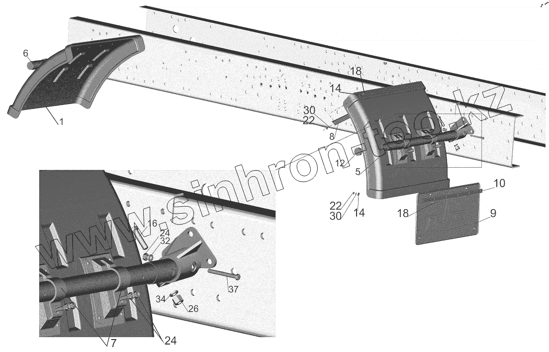 Каталог запасных частей к технике: МАЗ-643018. Установка крыльев 6430A8-8500048-040