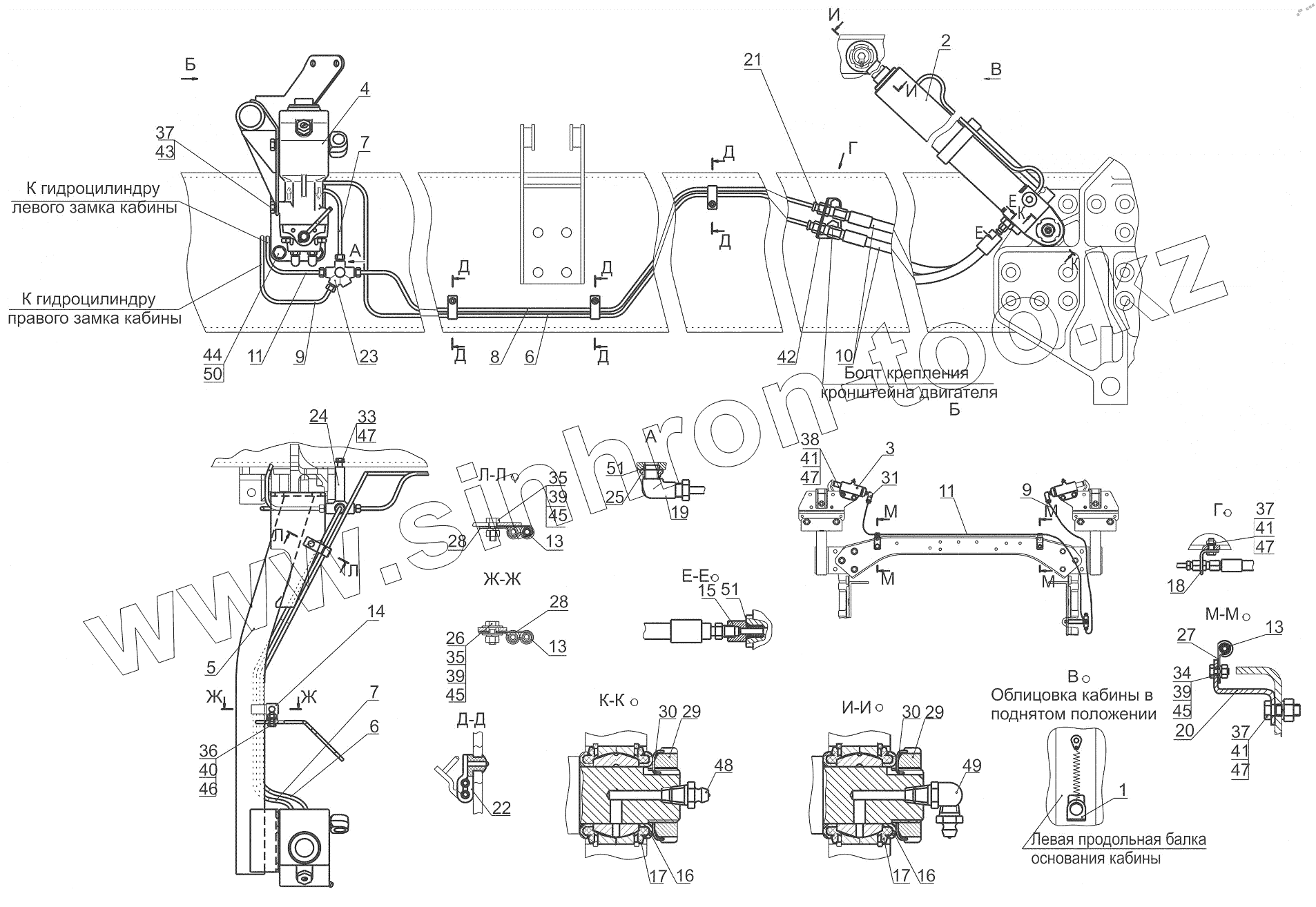 Каталог запасных частей к технике: МАЗ-643018. Установка механизма подъема кабины 544019-5000040
