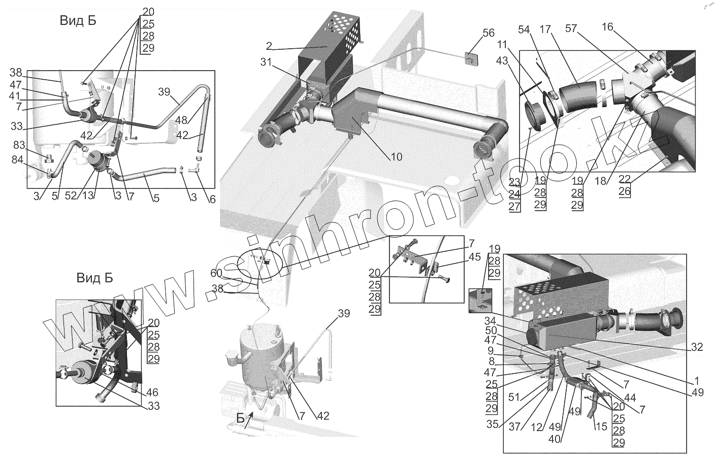Каталог запасных частей к технике: МАЗ-643018. Установка независимого воздушного отопителя 6430-8100002
