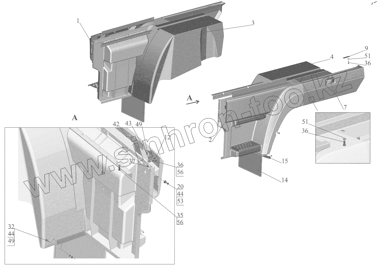 Каталог запасных частей к технике: МАЗ-643018. Установка оперения 6431-8400020-010