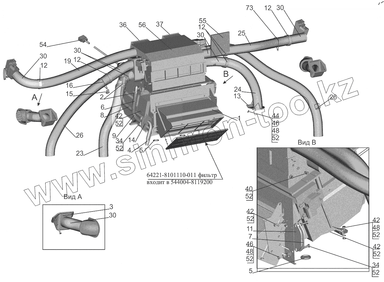 Каталог запасных частей к технике: МАЗ-643018. Установка отопителя 643008-8100001