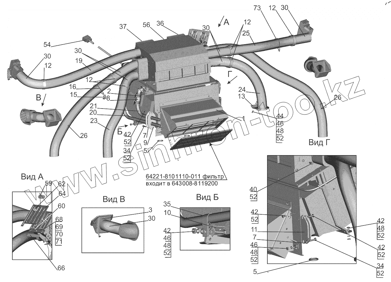 Каталог запасных частей к технике: МАЗ-643018. Установка отопителя 650118-8100001