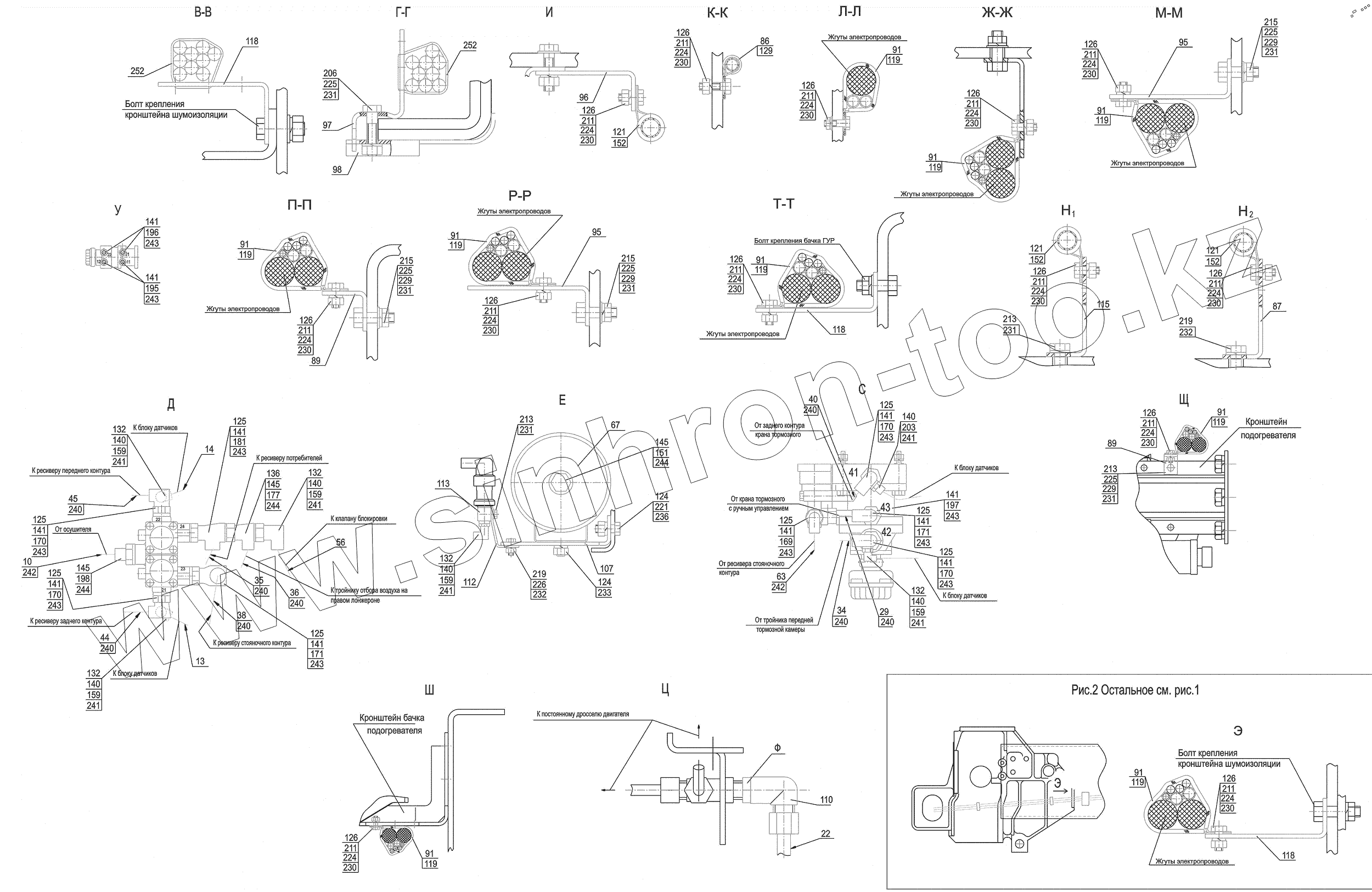 Каталог запасных частей к технике: МАЗ-643018. Установка пневмотормозов