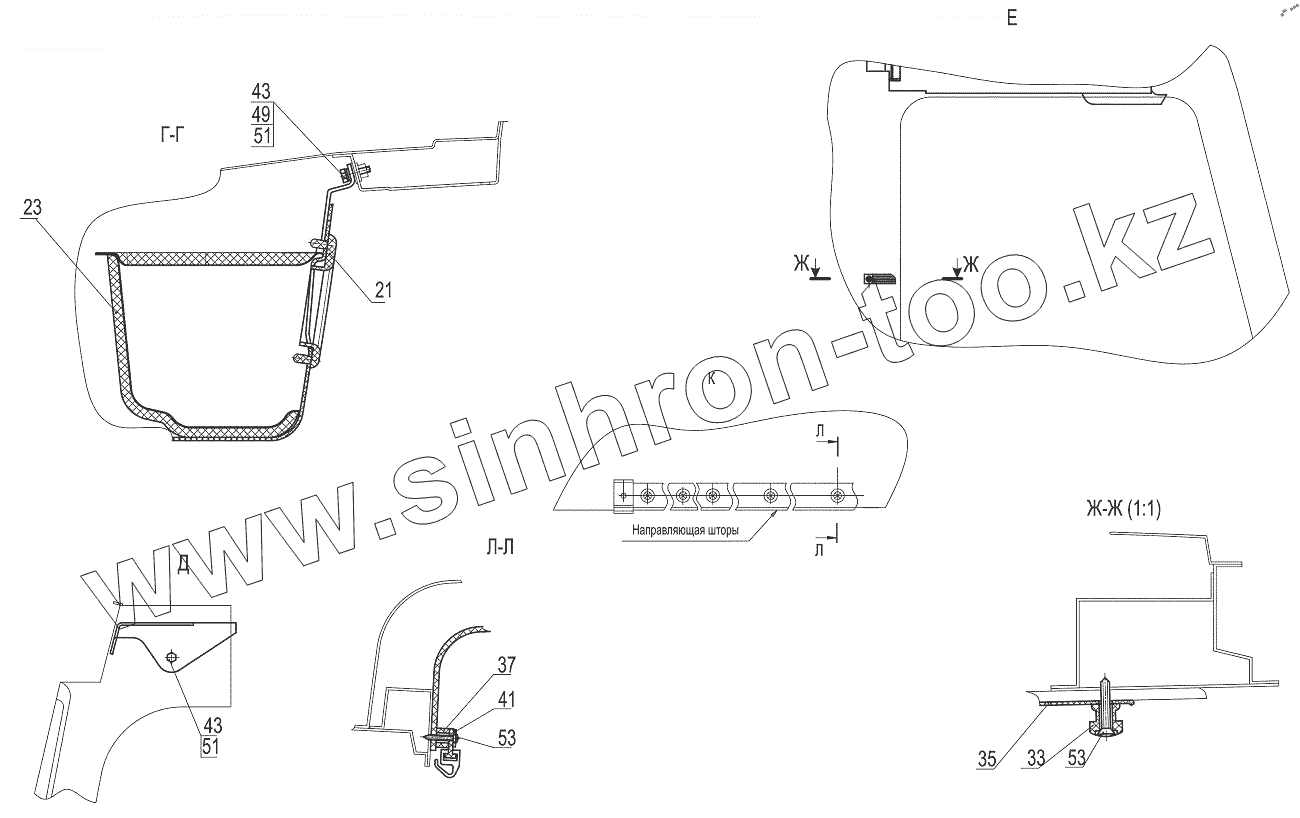 Каталог запасных частей к технике: МАЗ-643018. Установка полки, штор 5440-8200034