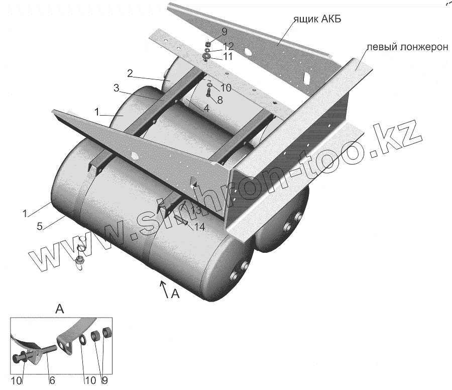 Каталог запасных частей к технике: МАЗ-643018. Установка ресиверов 643018-3513004