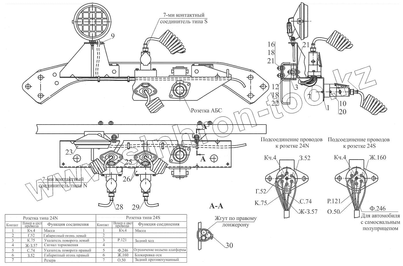 Каталог запасных частей к технике: МАЗ-643018. Установка штепсельных розеток 544019-3700015