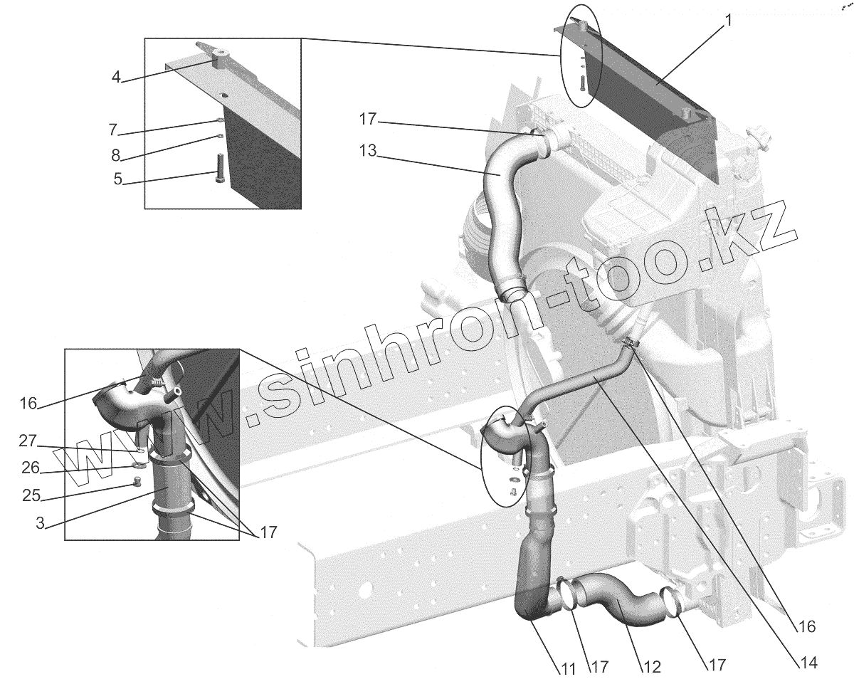 Каталог запасных частей к технике: МАЗ-643018. Установка системы охлаждения 544019-1300005-010