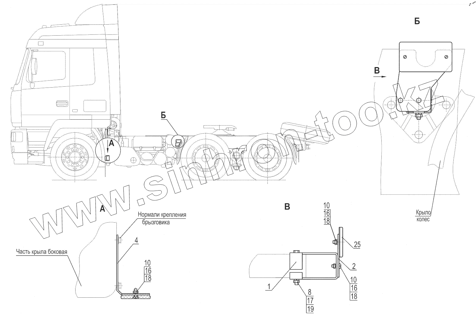 Каталог запасных частей к технике: МАЗ-643018. Установка световозвращателей 643008-3700079