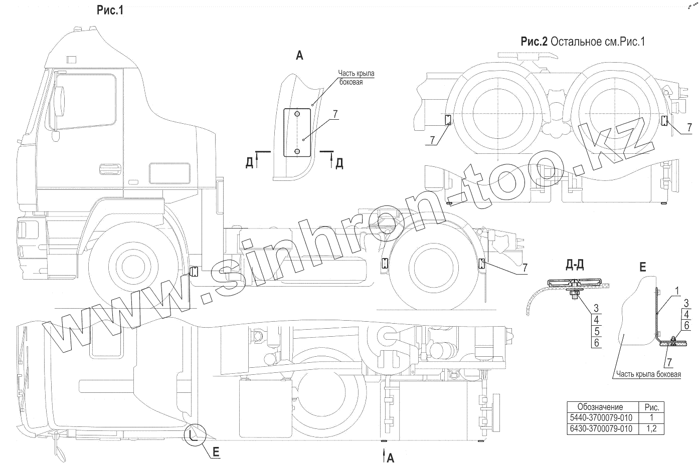 Каталог запасных частей к технике: МАЗ-643018. Установка световозвращателей 6430-3700079-010