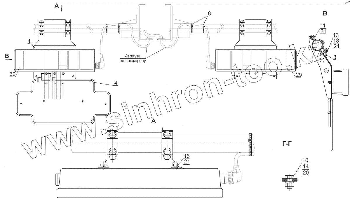 Каталог запасных частей к технике: МАЗ-643018. Установка задних фонарей 6430A9-3700009