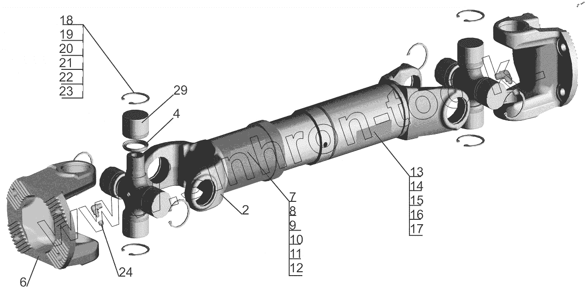 Каталог запасных частей к технике: МАЗ-643018. Вал карданный 54341-2201010-10