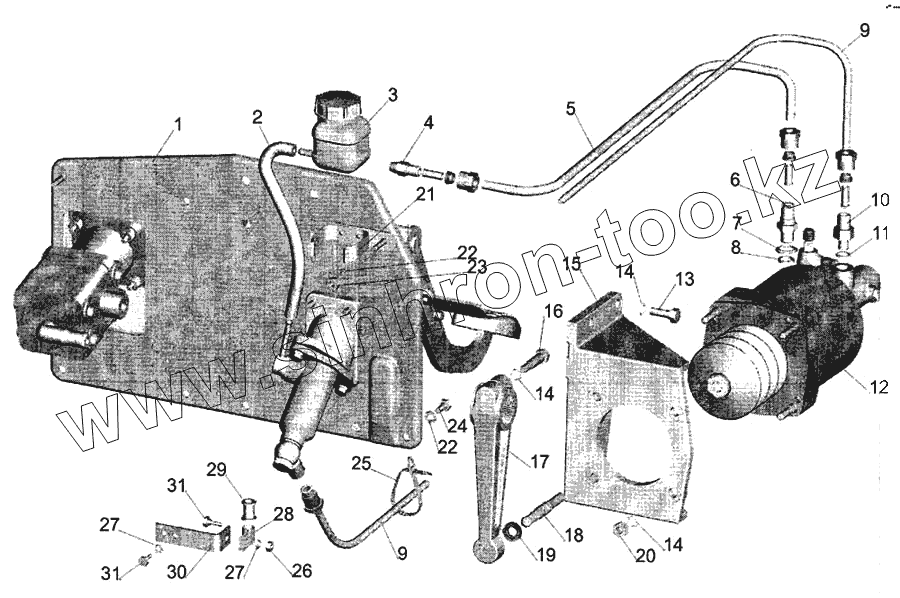 Каталог запасных частей к технике: МАЗ-643068. Механизм управления сцеплением
