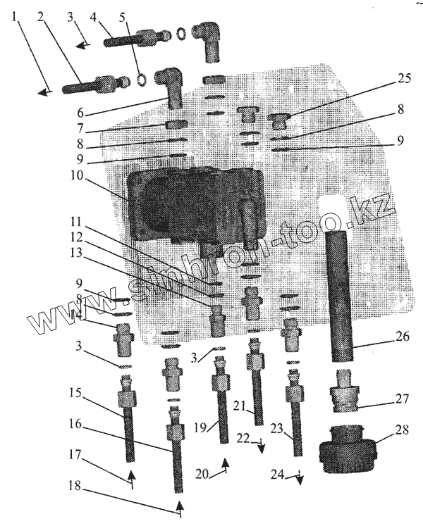Каталог запасных частей к технике: МАЗ-643068. Тормозной кран и присоединительная арматура
