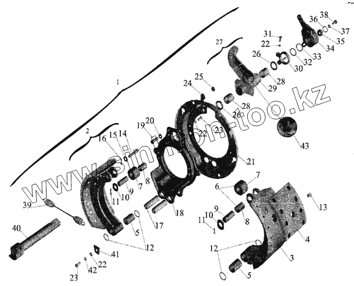 Каталог запасных частей к технике: МАЗ-643068. Тормозной механизм передних колес