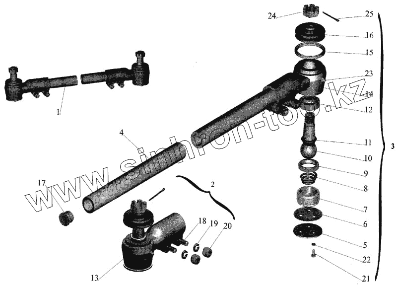 Каталог запасных частей к технике: МАЗ-643068. Тяга поперечная рулевая