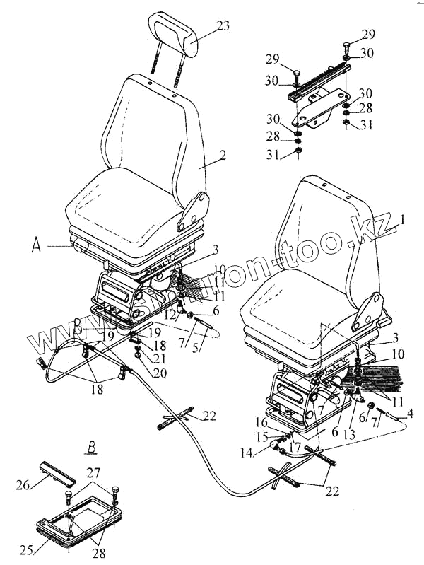 Каталог запасных частей к технике: МАЗ-643068. Установка и пневмопитание сидений