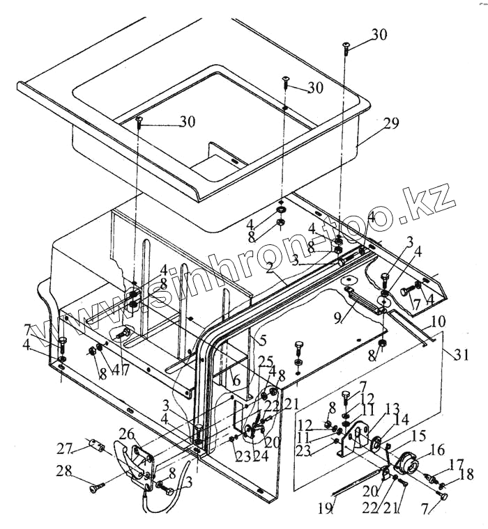 Каталог запасных частей к технике: МАЗ-643068. Установка инструментального ящика