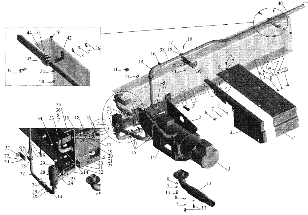 Каталог запасных частей к технике: МАЗ-643068. Установка подогревателя