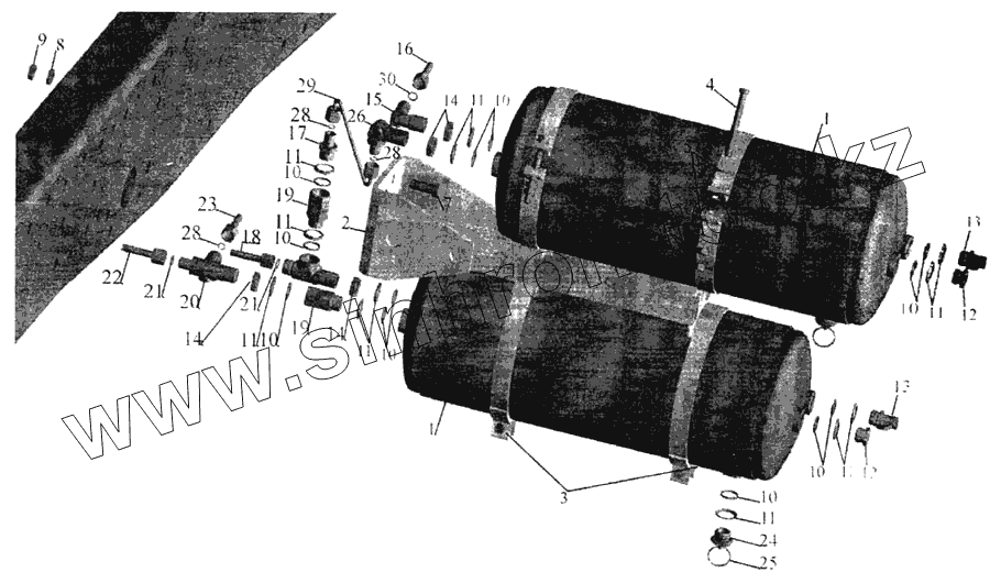 Каталог запасных частей к технике: МАЗ-643068. Установка ресиверов и присоединительной арматуры