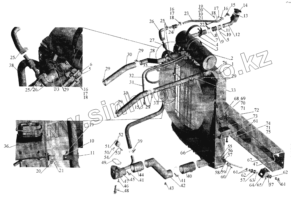 Каталог запасных частей к технике: МАЗ-643068. Установка системы охлаждения