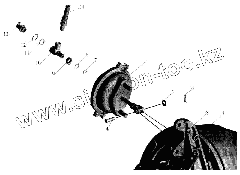 Каталог запасных частей к технике: МАЗ-643068. Установка тормозных камер и присоединительной арматуры