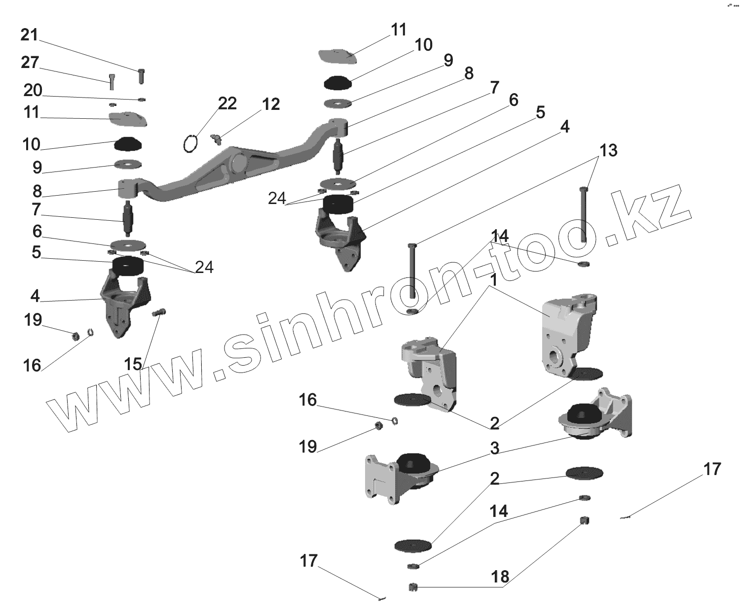 Каталог запасных частей к технике: МАЗ-6430A8 (5440A8, 5440A5). Крепление двигателя