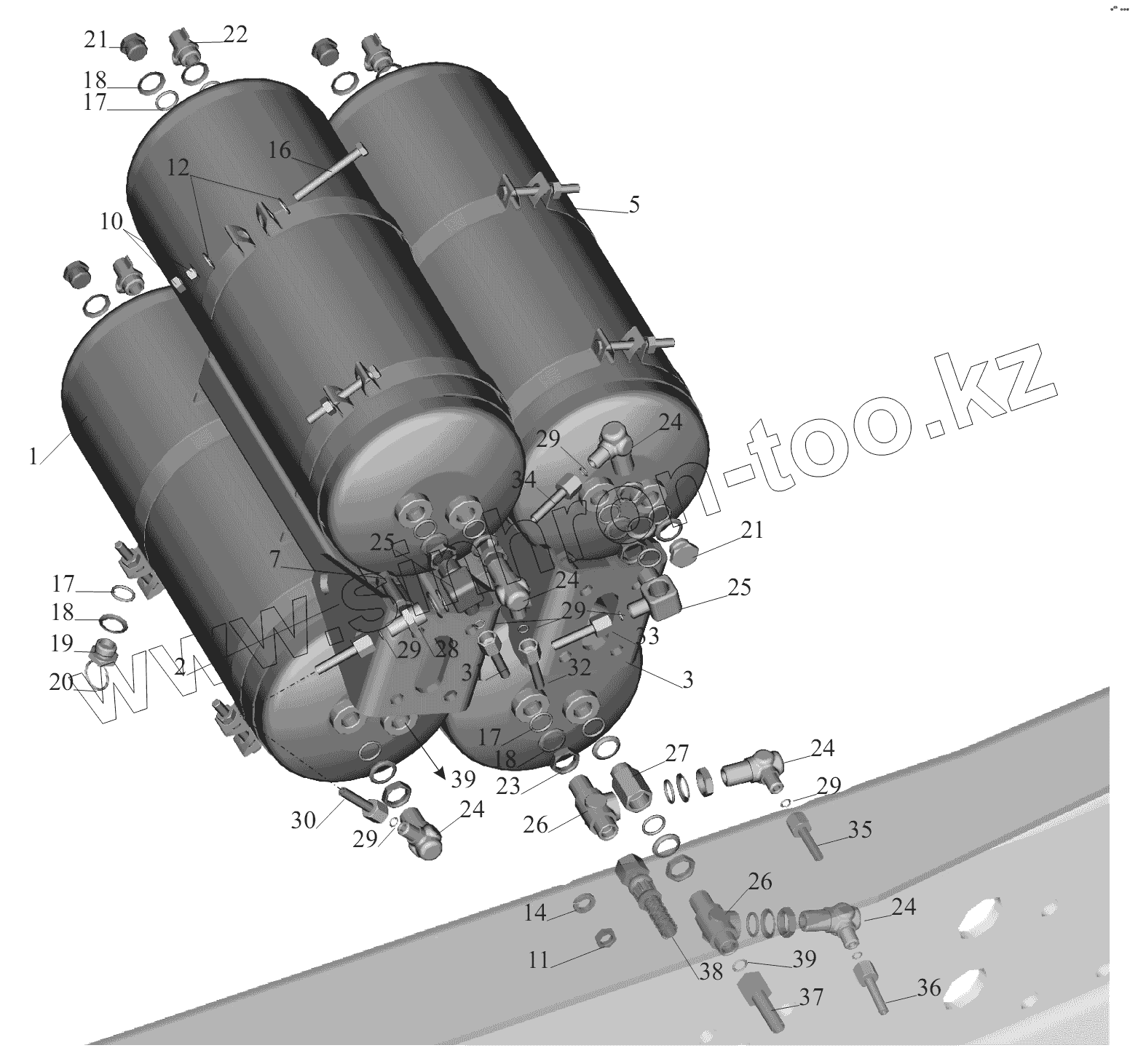 Каталог запасных частей к технике: МАЗ-6430A8 (5440A8, 5440A5). Крепление ресиверов 643020-3513005-010