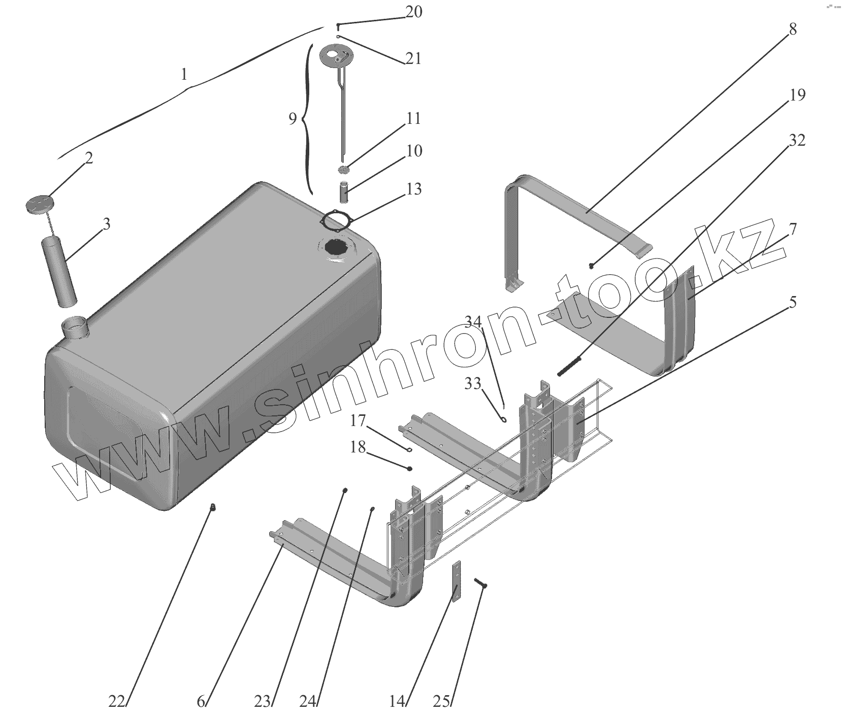 Каталог запасных частей к технике: МАЗ-6430A8 (5440A8, 5440A5). Крепление топливного бака 6430-1101002