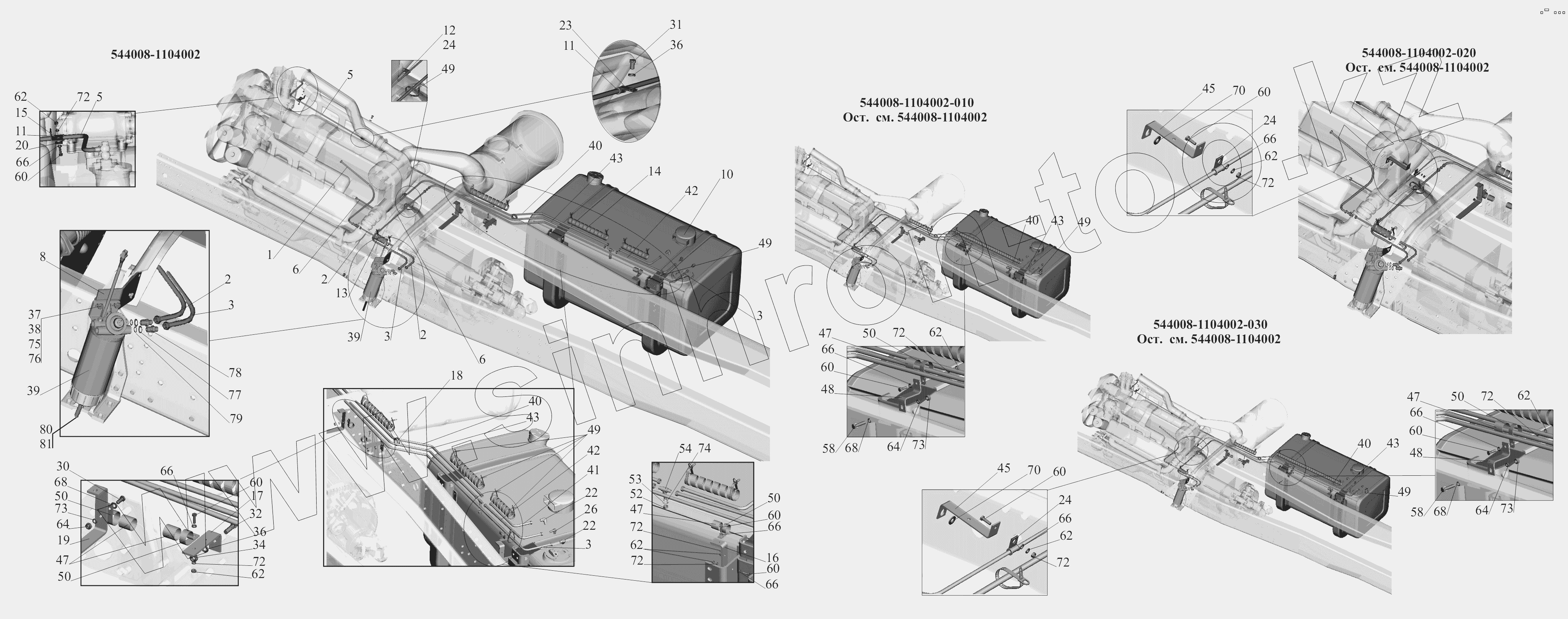 Каталог запасных частей к технике: МАЗ-6430A8 (5440A8, 5440A5). Крепление топливопроводов