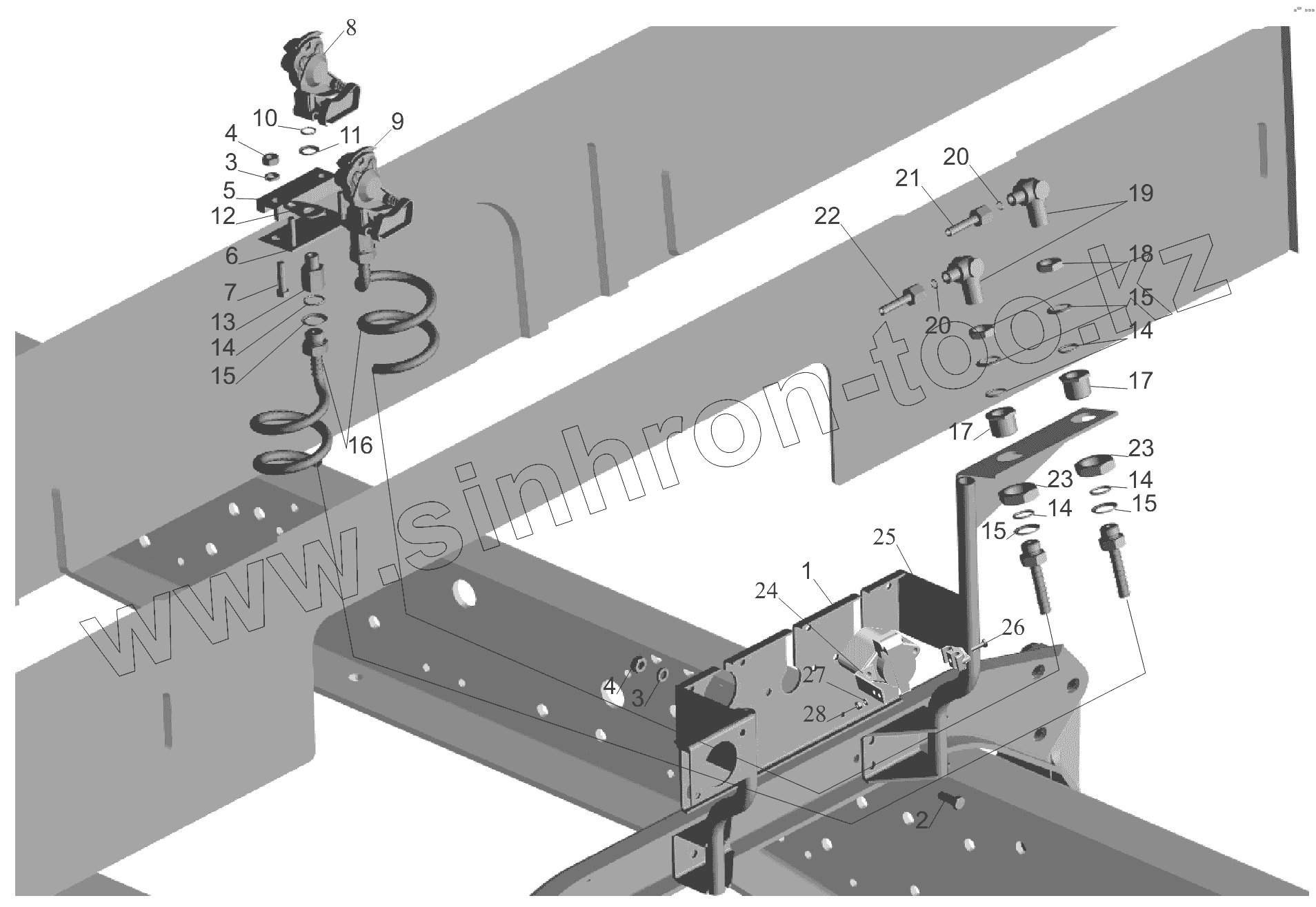 Каталог запасных частей к технике: МАЗ-6430A8 (5440A8, 5440A5). Пневмовыводы на полуприцеп 544008-3521004