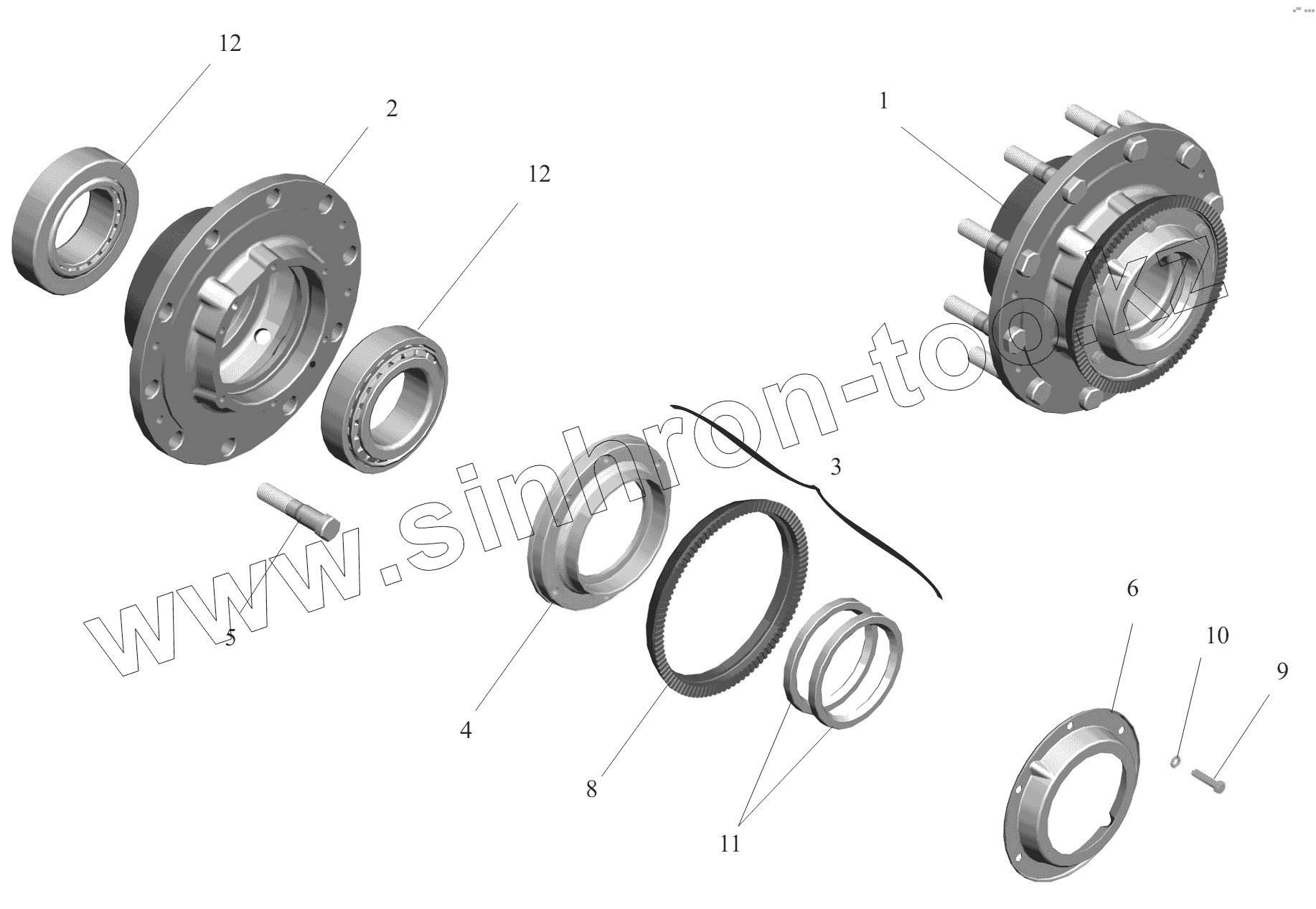 Каталог запасных частей к технике: МАЗ-6430A8 (5440A8, 5440A5). Ступица заднего моста