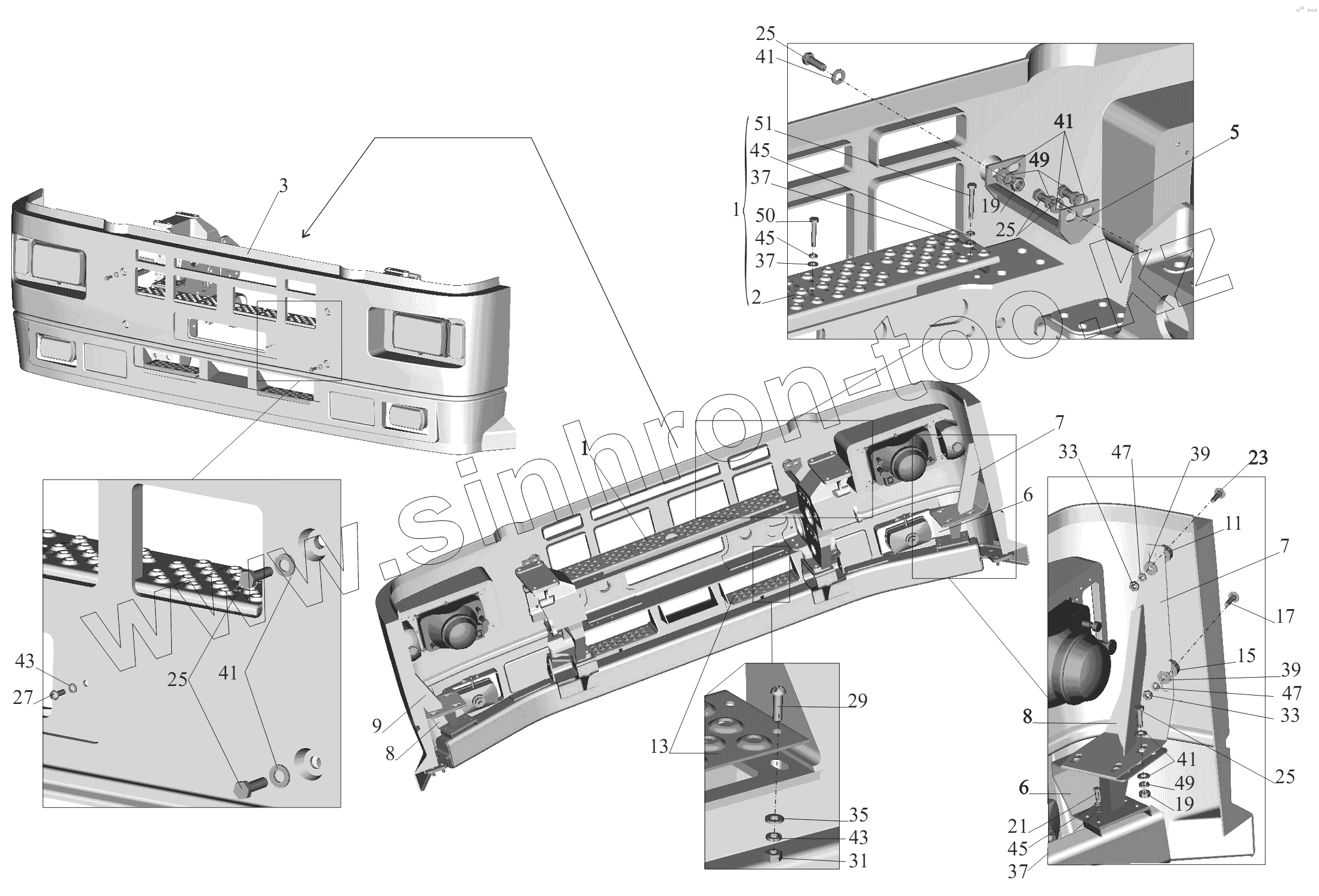 Каталог запасных частей к технике: МАЗ-6430A8 (5440A8, 5440A5). Установка бампера 54421-2803006-011