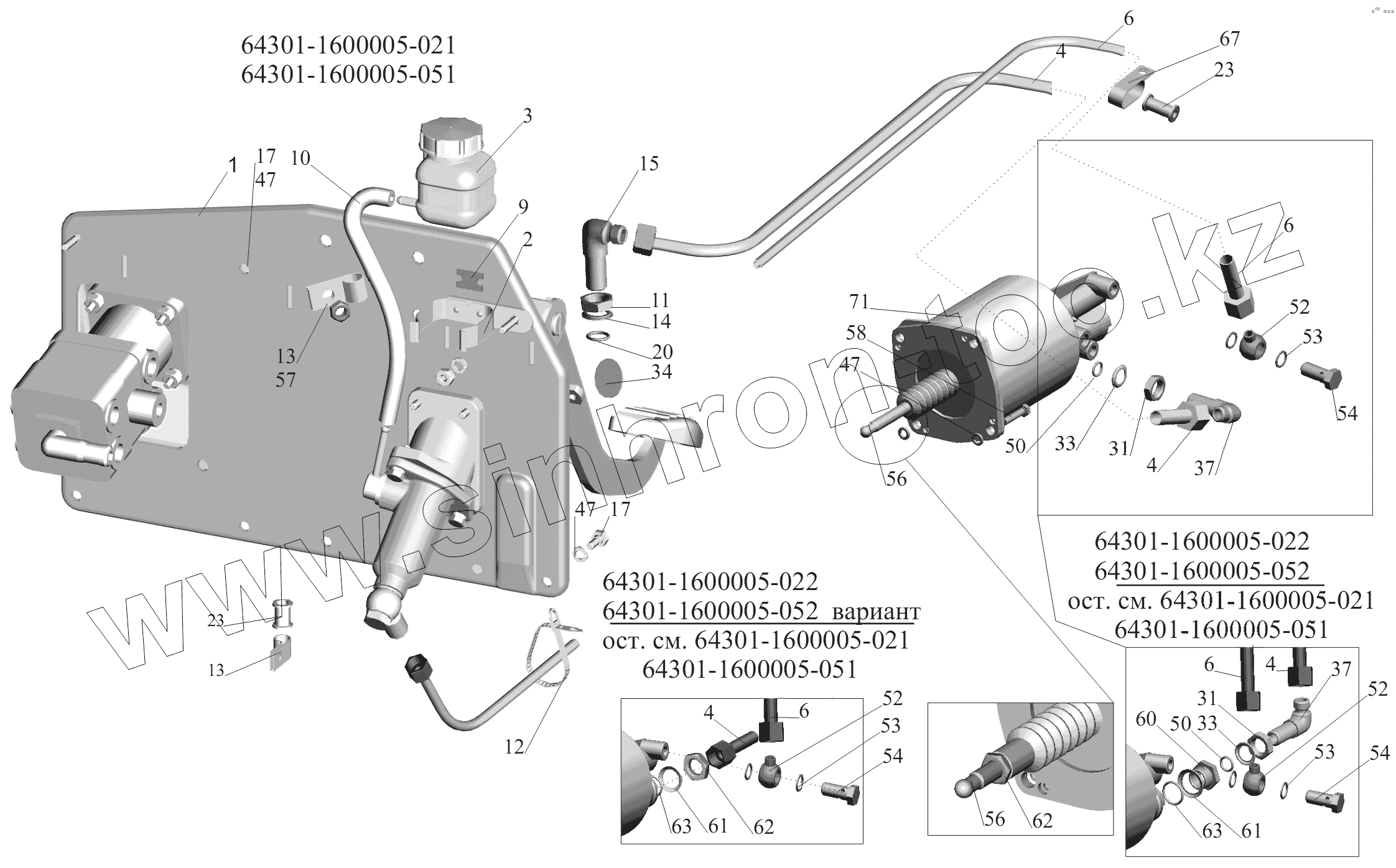 Каталог запасных частей к технике: МАЗ-6430A8 (5440A8, 5440A5). Установка механизма управления сцеплением