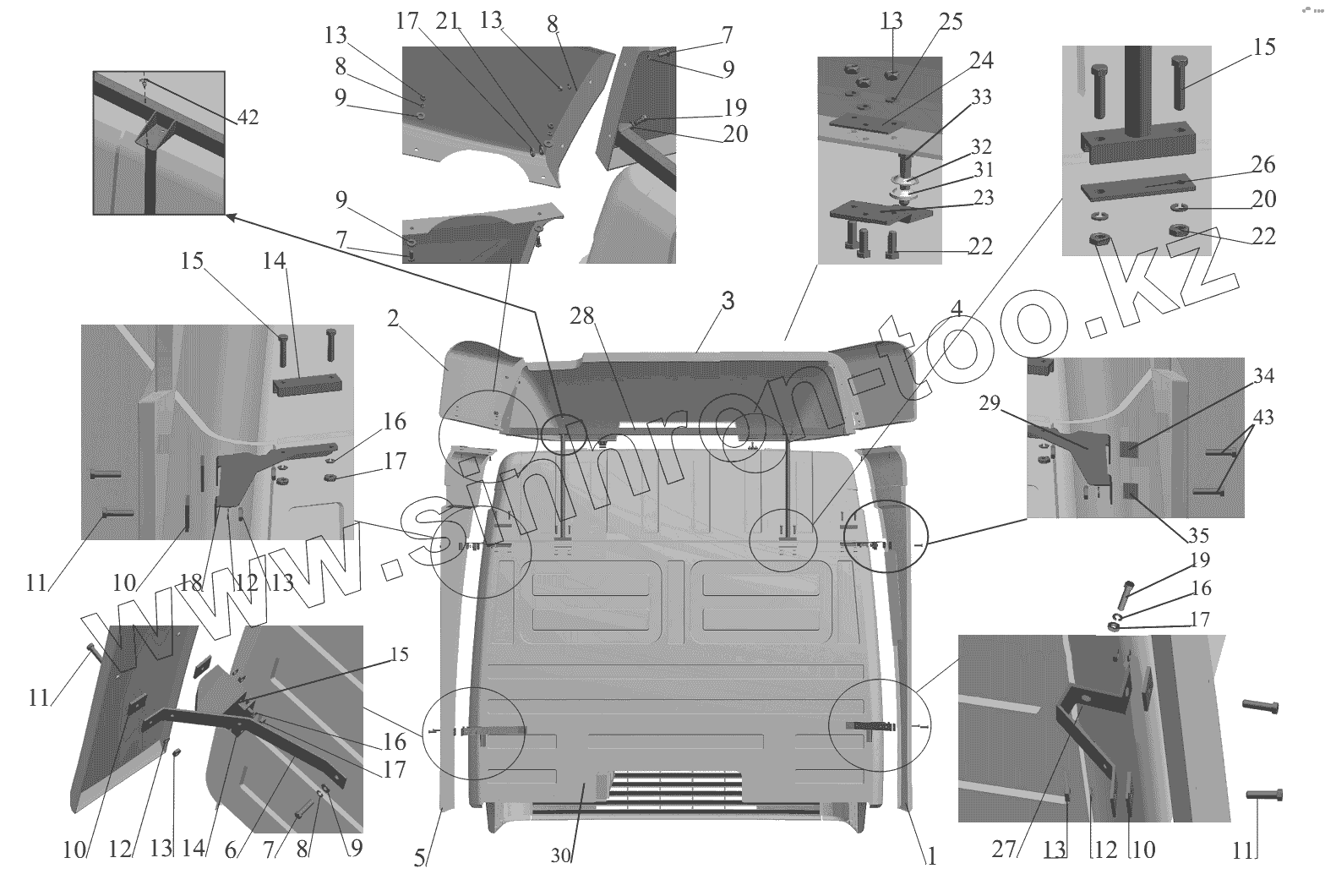 Каталог запасных частей к технике: МАЗ-6430A8 (5440A8, 5440A5). Установка обтекателя и закрылков