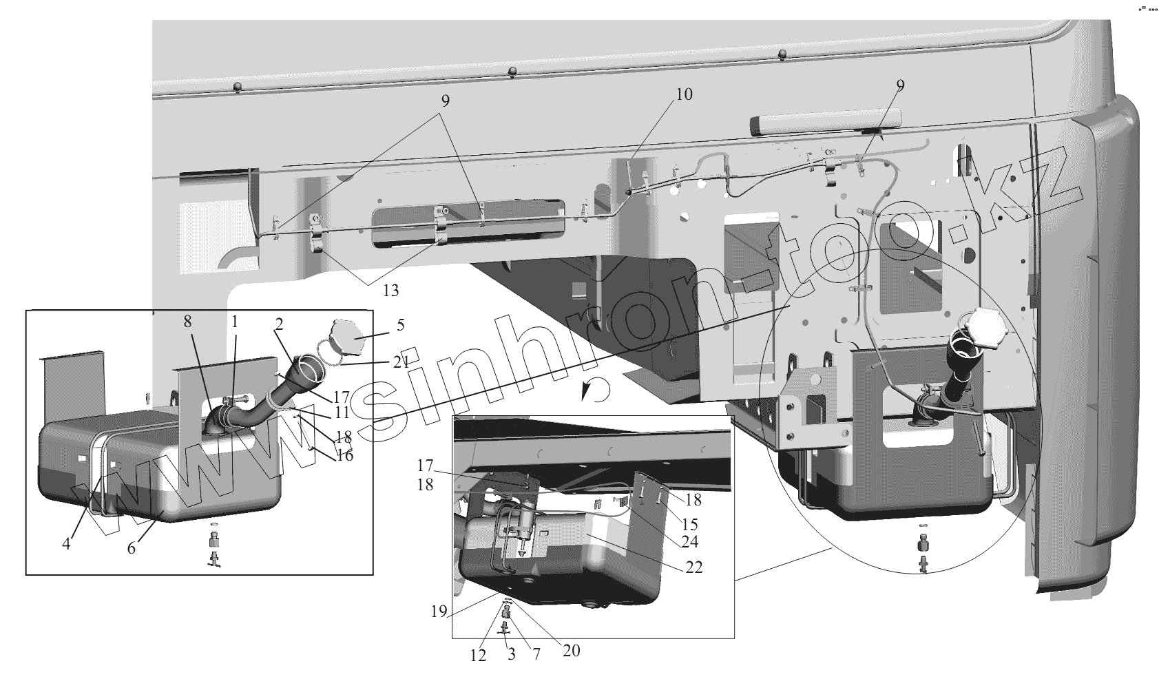 Каталог запасных частей к технике: МАЗ-6430A8 (5440A8, 5440A5). Установка омывателя 6430-5200008