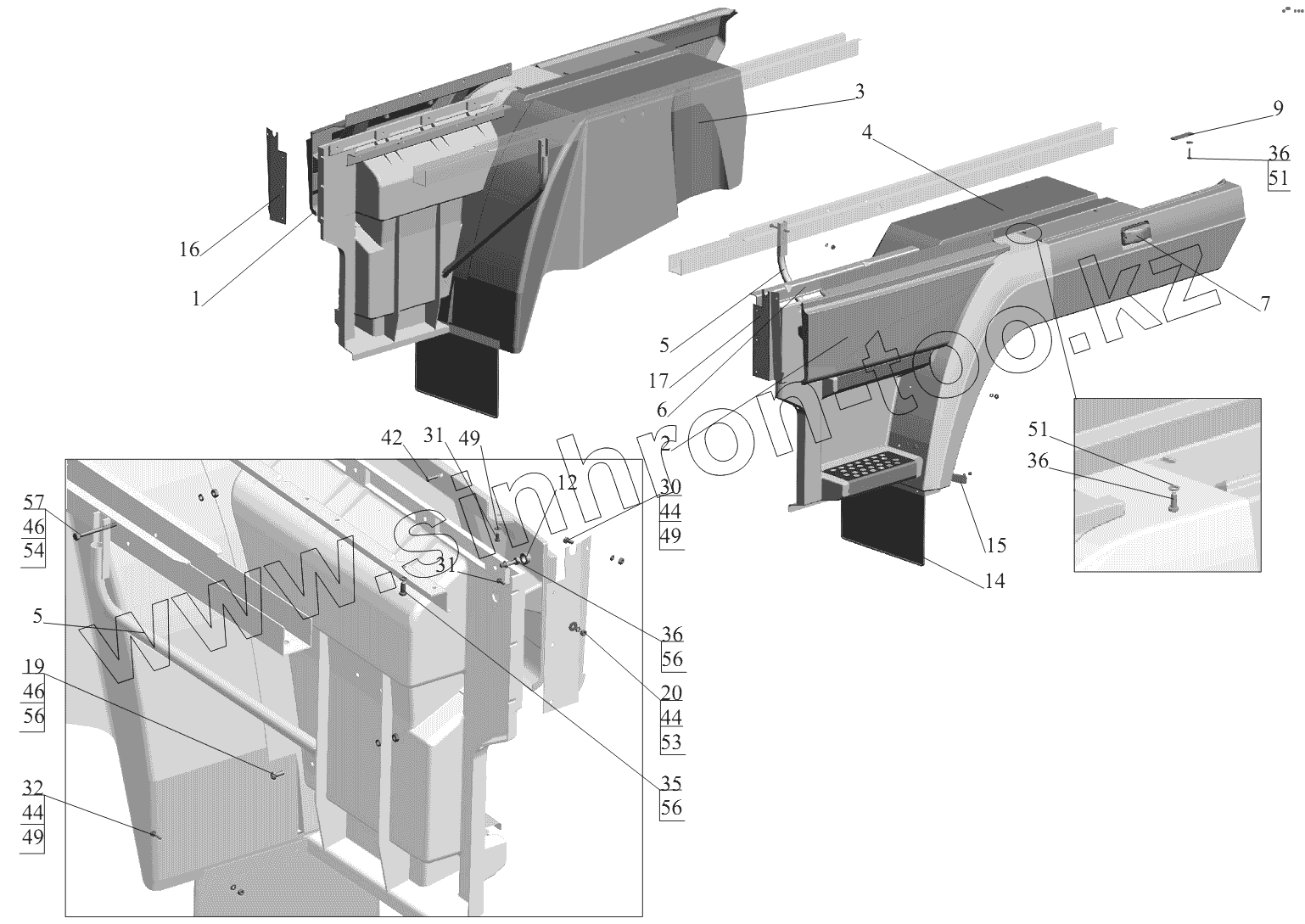 Каталог запасных частей к технике: МАЗ-6430A8 (5440A8, 5440A5). Установка оперения