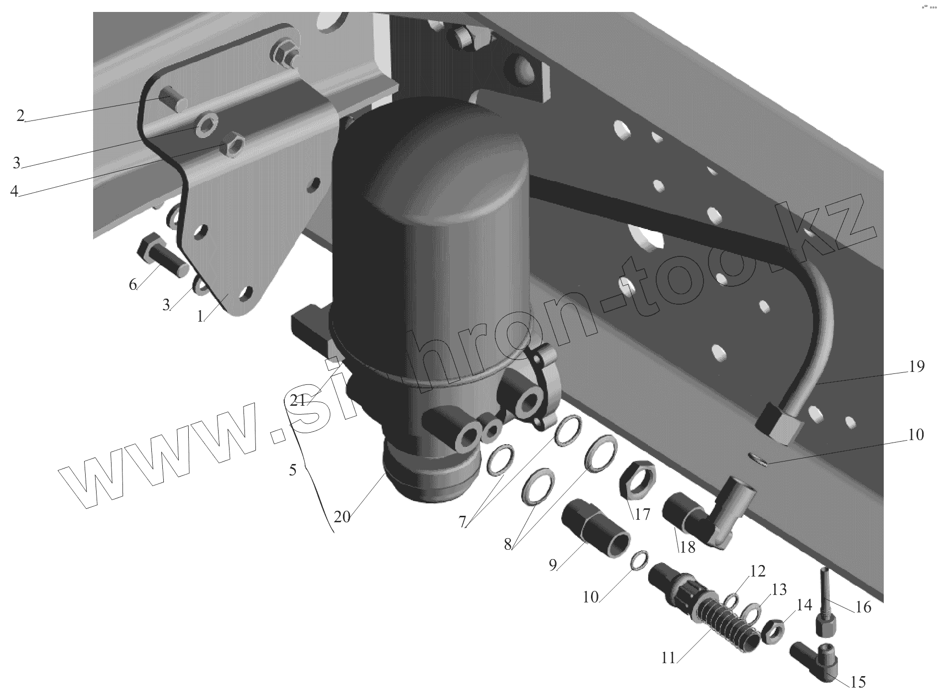 Каталог запасных частей к технике: МАЗ-6430A8 (5440A8, 5440A5). Установка осушителя воздуха 643020-3536004