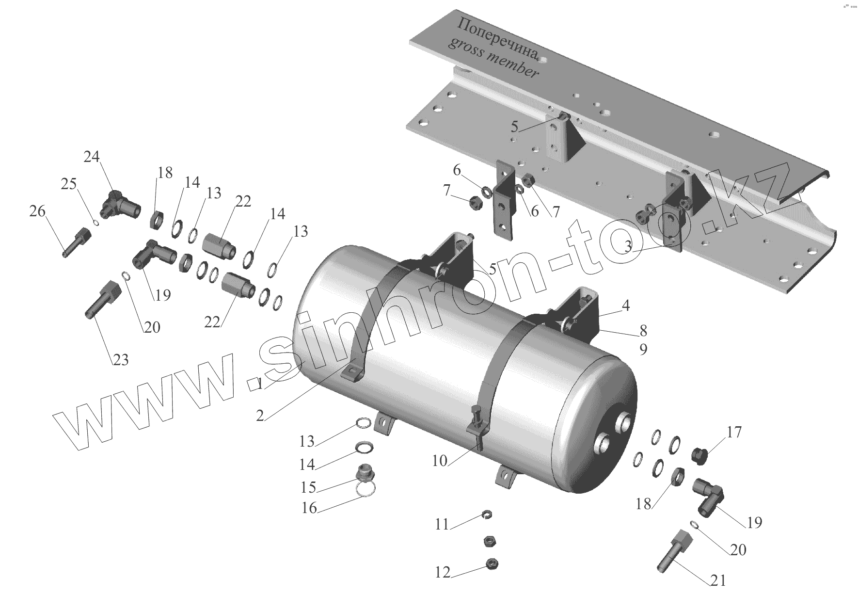 Каталог запасных частей к технике: МАЗ-6430A8 (5440A8, 5440A5). Установка ресивера 54401-3513007