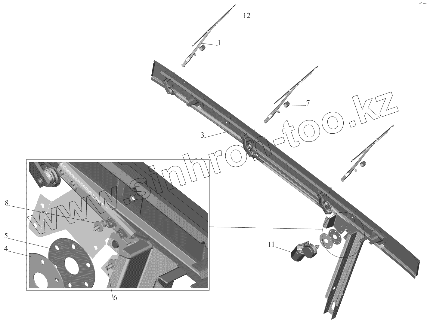 Каталог запасных частей к технике: МАЗ-6430A8 (5440A8, 5440A5). Установка стеклоочистителя 6430-3700041-001