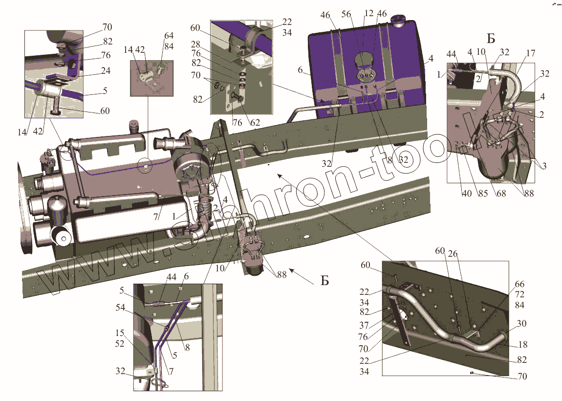Каталог запасных частей к технике: МАЗ-650108. Крепление топливопроводов 650108-1104002-010