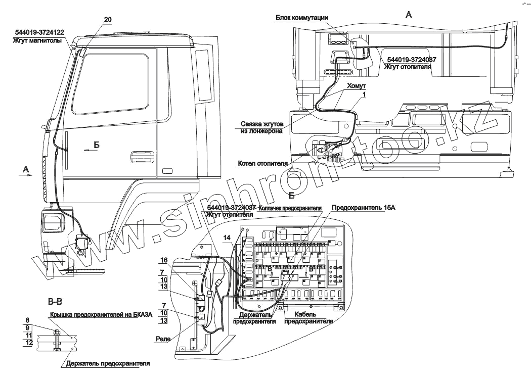 Каталог запасных частей к технике: МАЗ-650108. Установка электрооборудования подогревателя 6501-3700085