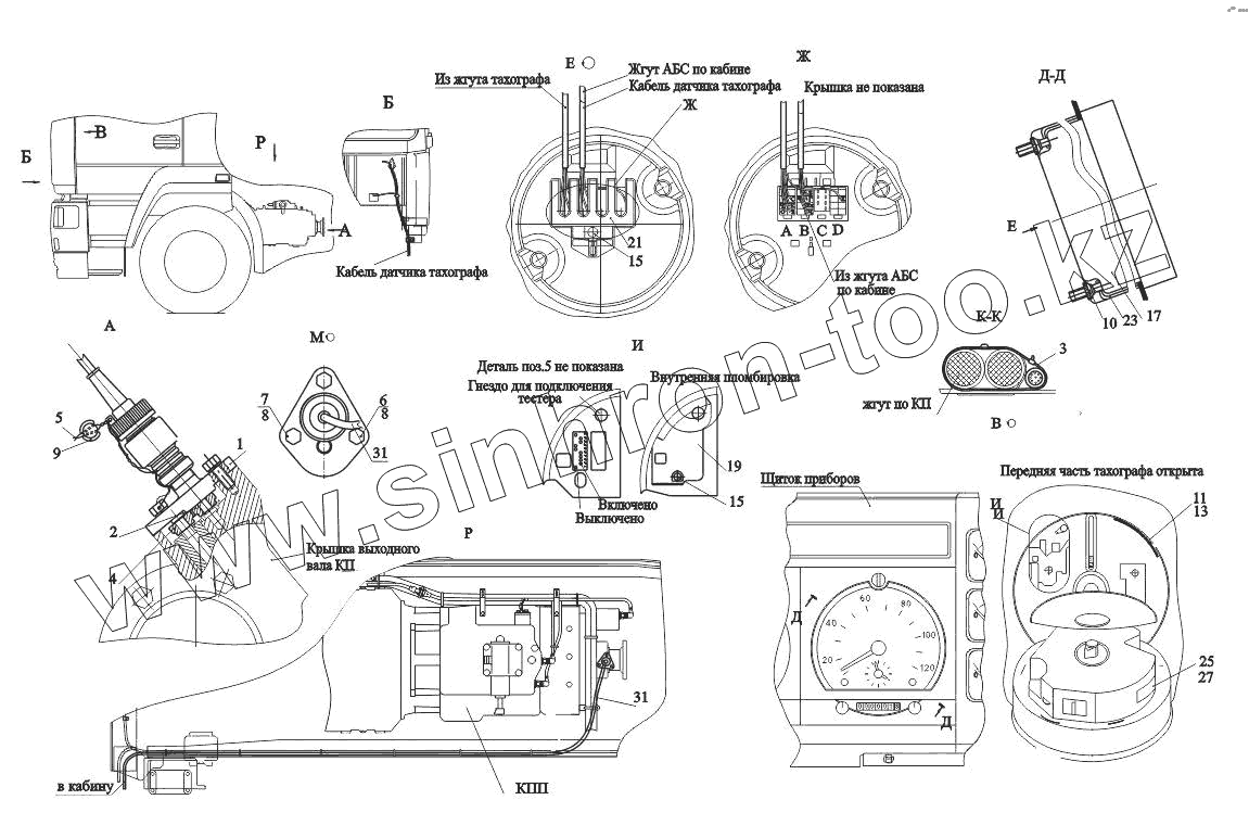 Каталог запасных частей к технике: МАЗ-650108. Установка и пломбировка тахографа 5440-3800005-020