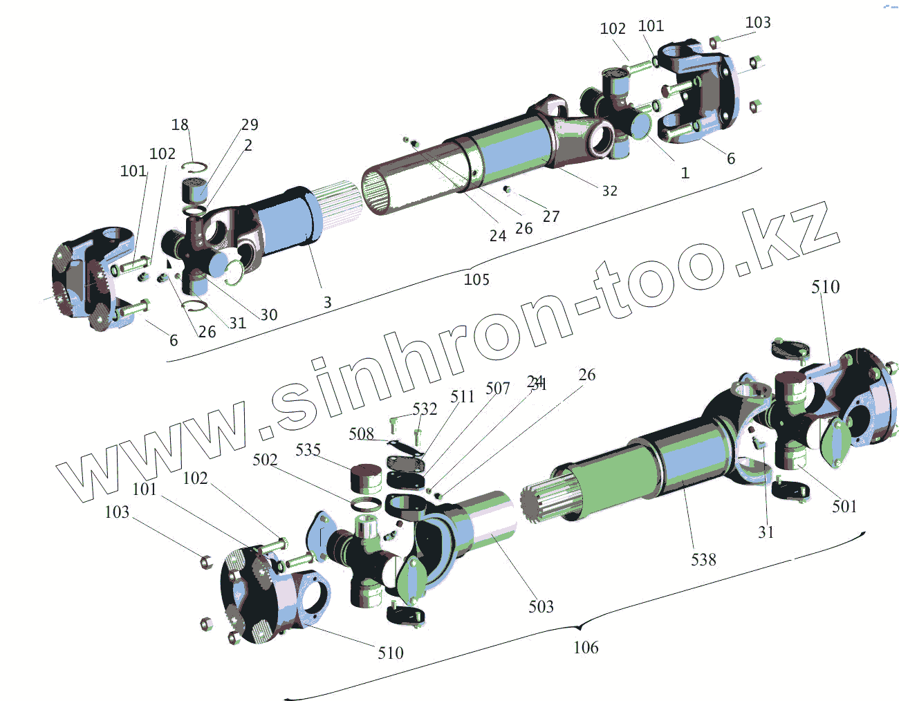 Каталог запасных частей к технике: МАЗ-650108. Установка карданных валов